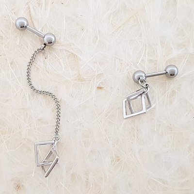 MP8 더블 사각링 체인 드롭 피어싱입니다.