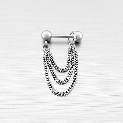 기본 바벨형 피어싱에 슬림한 3단 체인이 장식된 피어싱으로