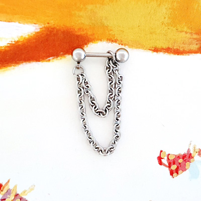 기본 바벨형 피어싱에 2단 체인이 장식된 피어싱으로